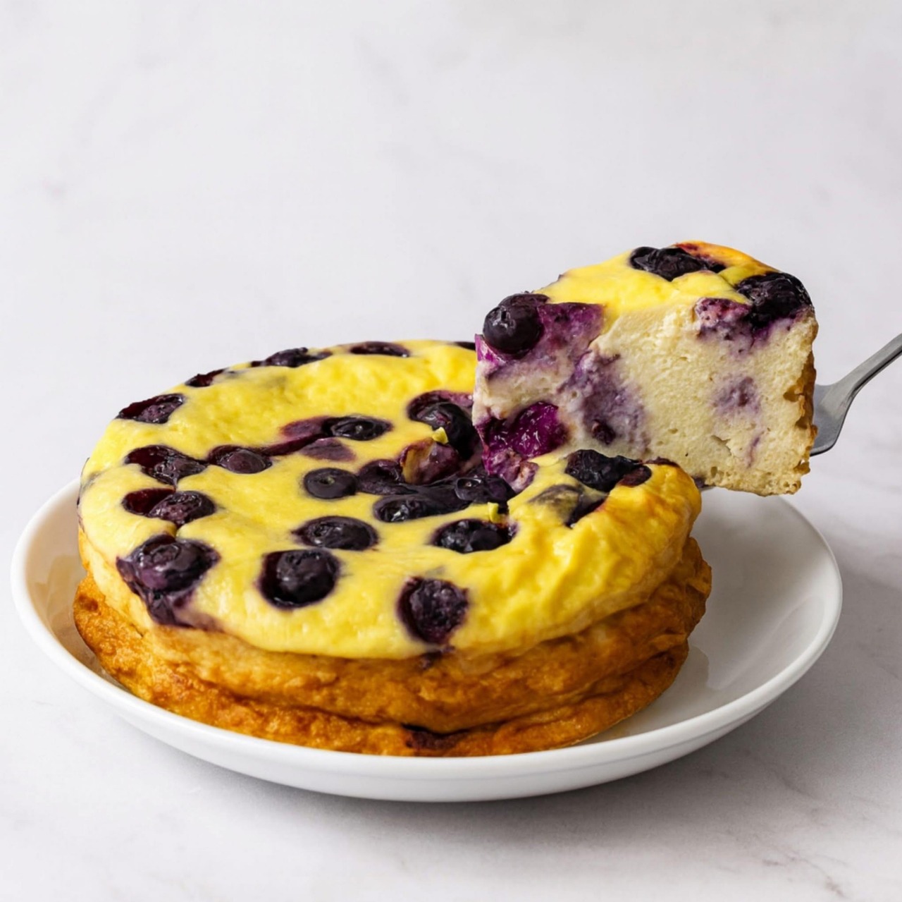 The batter comes together in minutes, with just three core ingredients and a handful of berries. It’s poured into a small pan, topped with fruit and baked until golden, puffed and lightly set. The result is a cake that’s tender in the centre, slightly crisp at the edges and dotted with juicy blueberries. It’s light enough for breakfast, elegant enough for tea and wholesome enough for everyday indulgence.