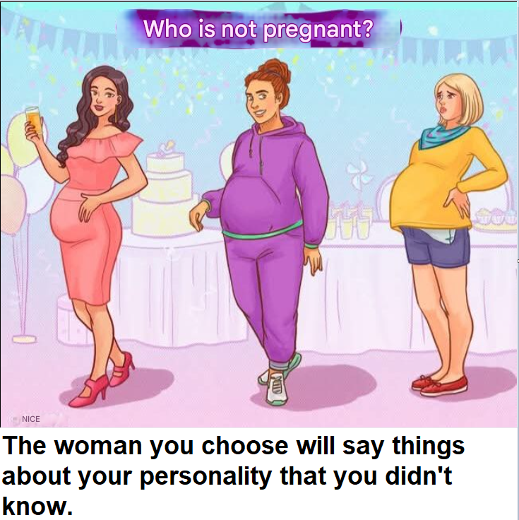 Today’s brain teaser is simple yet tricky: out of three women, one isn’t pregnant. Your job is to spot who it is within 5 seconds.