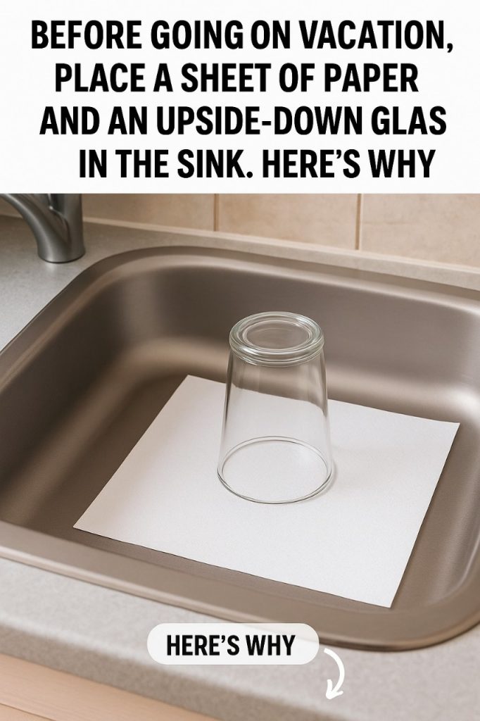 When we talk about preparing for vacation, we often think about booking a hotel, packing our suitcase, checking our ID, programming our GPS, or making sure the plants will be watered while we’re away. But there’s one discreet, almost invisible gesture that could save you a very unpleasant surprise when you get back : leaving an upside-down glass on a piece of paper in the kitchen sink .