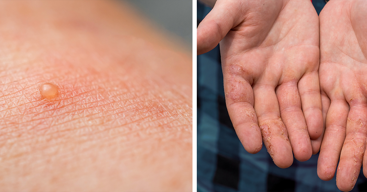 A common – and extremely bothersome – form of eczema is the one we mentioned above: dyshidrotic eczema. As per the Cleveland Clinic, it causes tiny, itchy blisters appear on your hands and feet. They can crack and peel as they heal, eventually resolving with scaling after a few weeks.