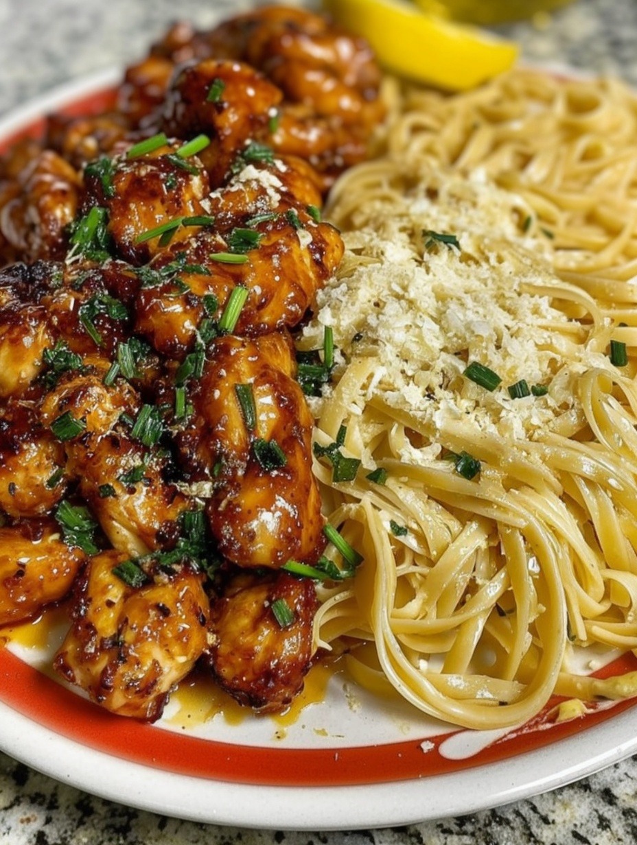 Lemon Garlic Butter Chicken with Creamy Parmesan Linguine