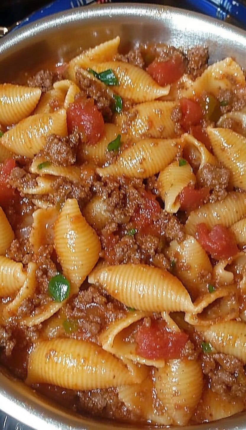 A comforting and hearty pasta dish where tender shells are smothered in a rich, savory meat sauce and topped with melted cheese. It’s a simple, family-friendly meal that comes together in one pot for easy cleanup.
